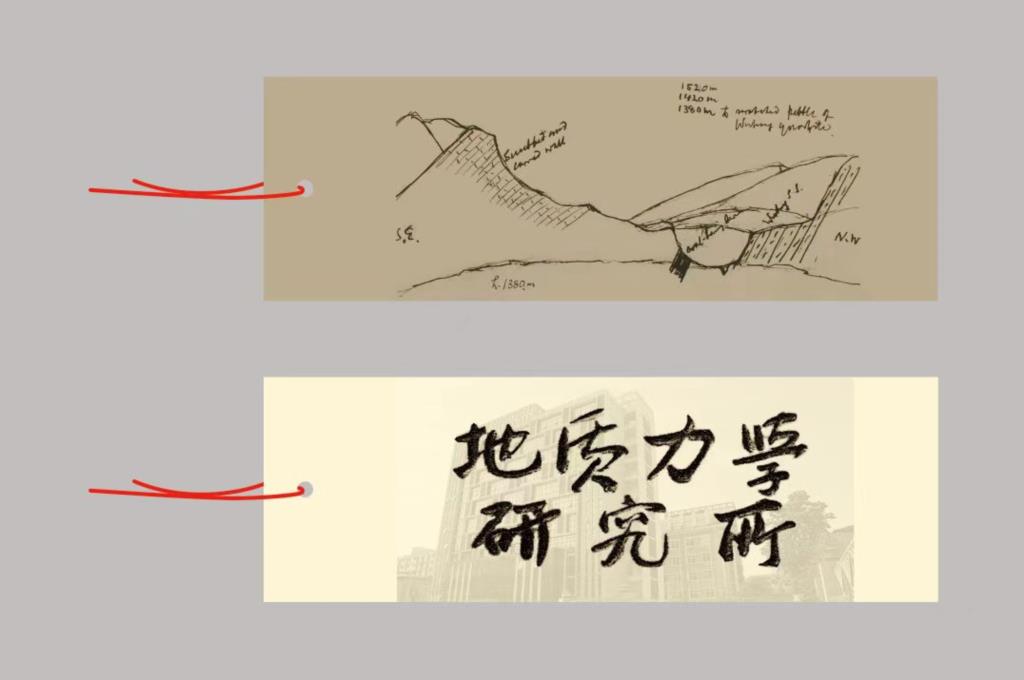 封面地质素描手稿为李四光绘制的湖北建始茅田附近地质地形切面。手稿收录在《中国冰期之探讨》,文章载于中央研究院《学术会刊》,1942年11月,第1卷,第1期。