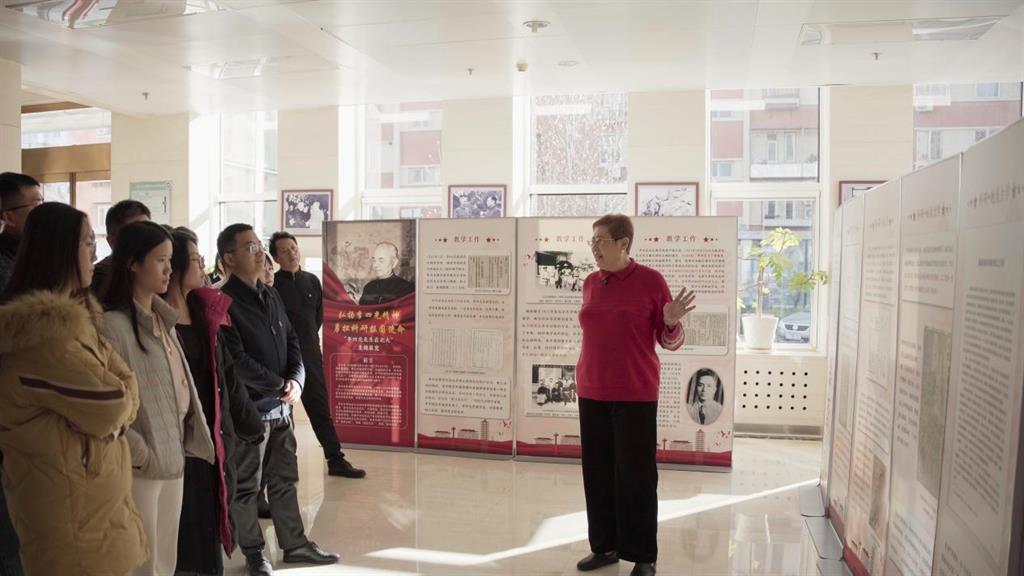 在李四光外孙女邹宗平女士的带领下,党员同志们参观了《李四光先生在北大》史料展。邹宗平女士详细讲述了李四光在北大任教期间的教学成果、科研成就、校务工作和社会活动等重要事迹。李四光曾两度在北京大学任教,对北京大学地质学系的建设和发展做出重要贡献,他一生中在地质学方面的主要科学成就,也都是在这期间开始的。本次展览在展现李四光先生科学家精神的同时,鼓励广大党员同志及地质工作者们厚植“爱国之情”,砥砺“强国之志”,履践“报国之行”。