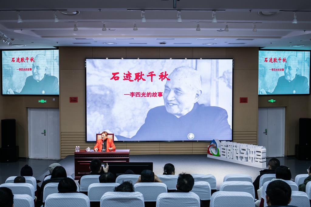 讲座伊始,邹宗平首先 以李四光的一首诗作, 解释 了“石迹耿千秋”的来历。她表示,这不仅是李四光从事地质科学研究的真实写照,也写出了当年地质工作之艰辛,和地质人克服困难条件为祖国找出更多宝藏的决心。